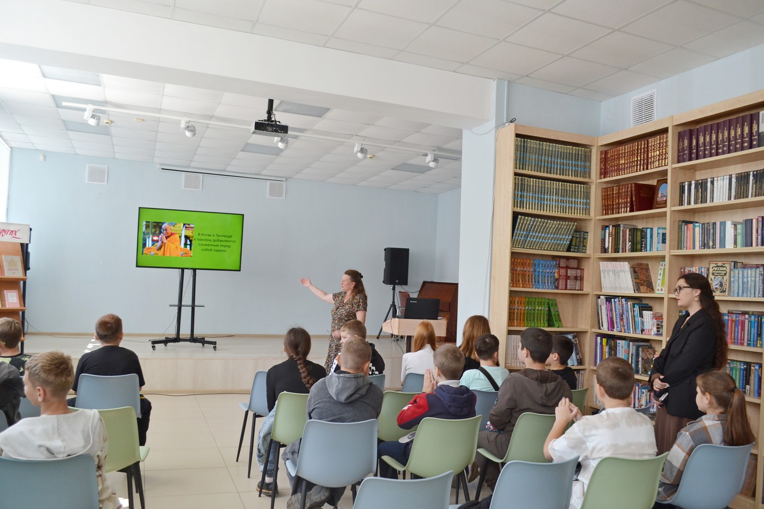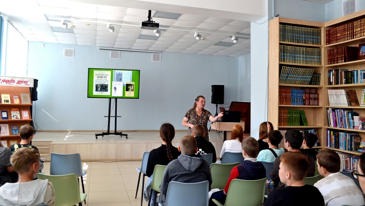 15 сентября в Центральную городскую библиотеку им. Н. К. Крупской на час вежливых наук «Этикет – дело серьезное» были приглашены пятиклассники МАОУ СОШ № 5 имени Ю. А. Гагарина. Школьники совершили увлекательное путешествие в историю этикета, узнав, как в разных странах формировались удобные и разумные формы общения. Особое внимание было уделено памятникам русской литературы, регламентирующим поведение: от «Поучениям детям» Владимира Мономаха и мудрого «Домостроя» до наставлений молодым людям из «Юности честное зерцало», изданного при Петре I. Проверить свои знания правил поведения в современном обществе ребята смогли, приняв участие в оживленной викторине «Весёлый этикет». Завершился познавательный час просмотрам искрометного выпуска детского юмористического журнала «Ералаш» – «День вежливости», подарившего юным зрителям массу положительных эмоций и отличное настроение.