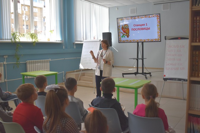 11 сентября для юных читателей МАОУ СОШ №22 им. Героя РФ Д. Е. Иванова прошёл литературный калейдоскоп «Без пословицы и слово не молвится». Школьники узнали о жанрах устного народного творчества, с большим удовольствием вспомнили названия русских народных сказок, отгадывали загадки о доме, животных, природных явлениях, поучаствовали в конкурсе «Собери пословицу», «Герои сказок», «Угадай народный инструмент». Всем особенно понравился конкурс «Бой скороговорок», где нужно было как можно быстрее прочитать скороговорку. Встреча получилась весёлой, интересной и познавательной.