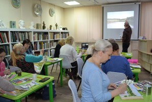 22 ноября в Центральной городской библиотеке им. Н. К. Крупской прошло занятие мастер-класса «Каждый может рисовать!». Под руководством преподавателя Олега Алексеевича Девиза участники рисовали акварельный пейзаж. В качестве референса был выбран этюд с натуры «Отражение луны» художника Василия Худякова. Более подробно на занятии разбирали технику рисовки и цветопередачу объектов в отражении воды. Участники мастер-класса вместе с педагогом последовательно разобрали построение и палитру картины.