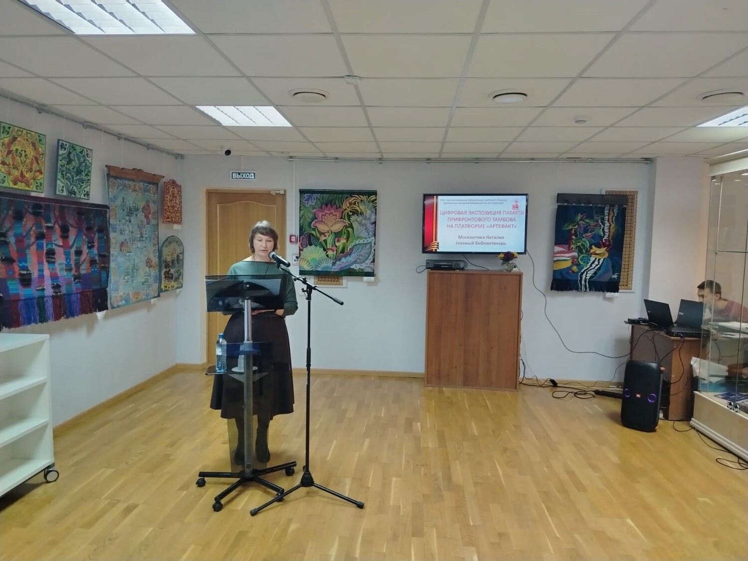 15 октября главный библиотекарь Центральной городской библиотеки им. Н. К. Крупской Наталия Москвитина приняла участие в межрегиональном круглом столе «Библиотека ‒ территория знаний в условиях цифровизации. Современные практики и новые смыслы в патриотическом воспитании пользователей». Наталия Николаевна рассказала о процессе и технических аспектах создания "Цифровой экспозиция памяти прифронтового Тамбова на платформе «Артефакт» и широких возможностях использования данного ресурса в работе библиотек. | |